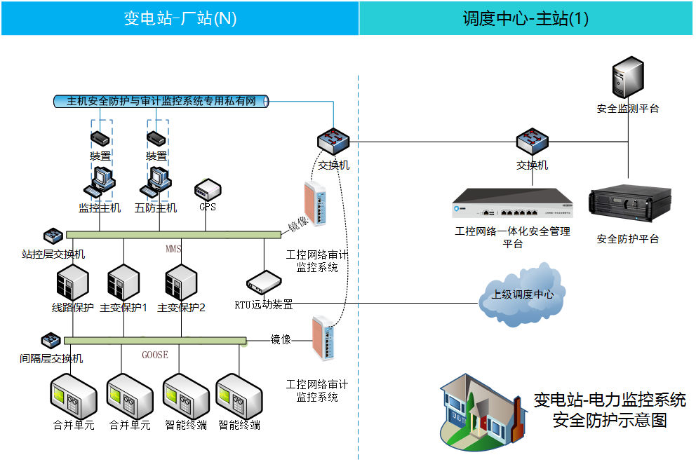 - 应用范围:主要用于110kV无人变电站、220kV有人变电站监控系统安全防护。平台部署在调度中心,实现多个变电站的统一管控。